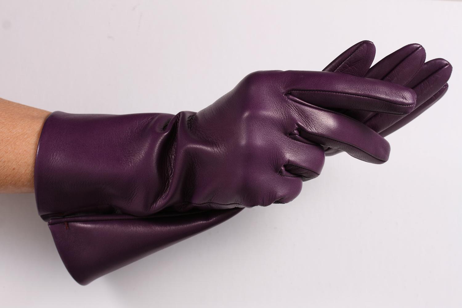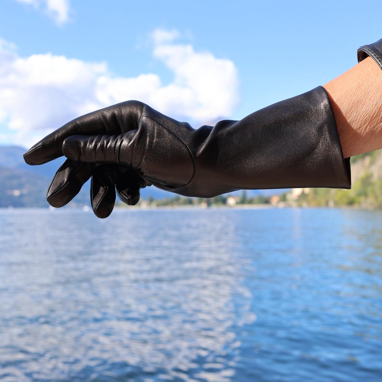 35 cm lange Damen Lederhandschuhe mit Seidenfutter