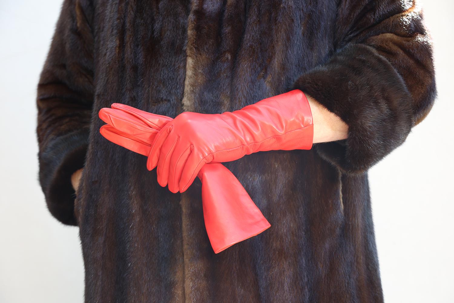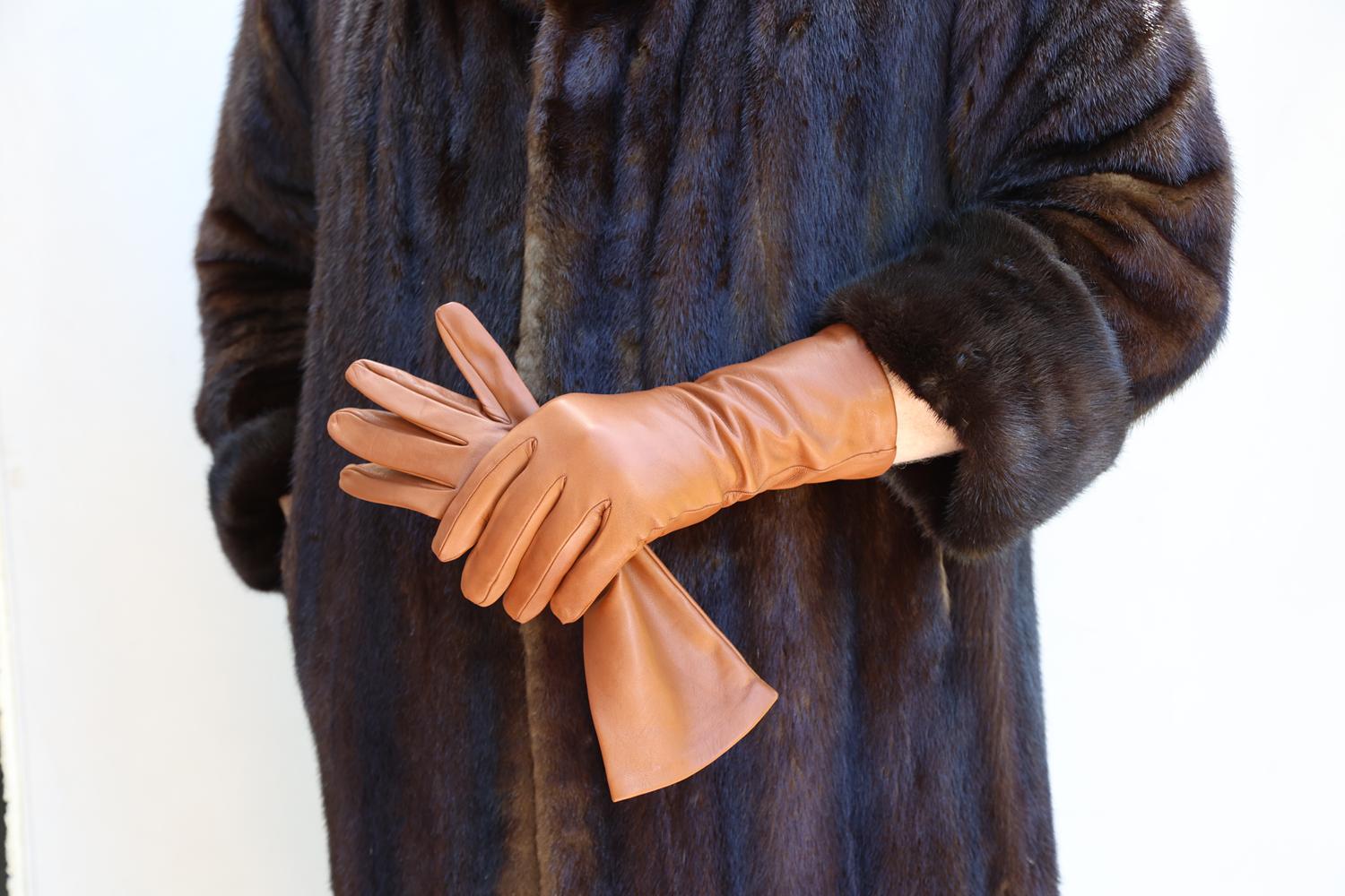35 cm lange Herren Lederhandschuhe mit Seidenfutter