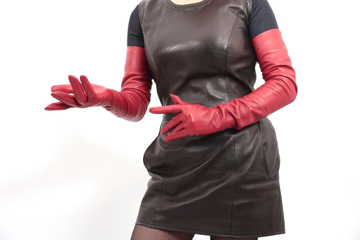 Bordeauxrote Damen Stretchlederhandschuhe – Limited Edition