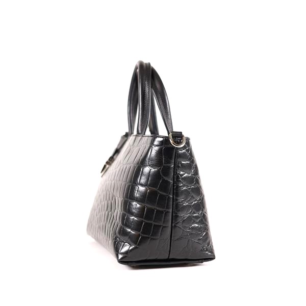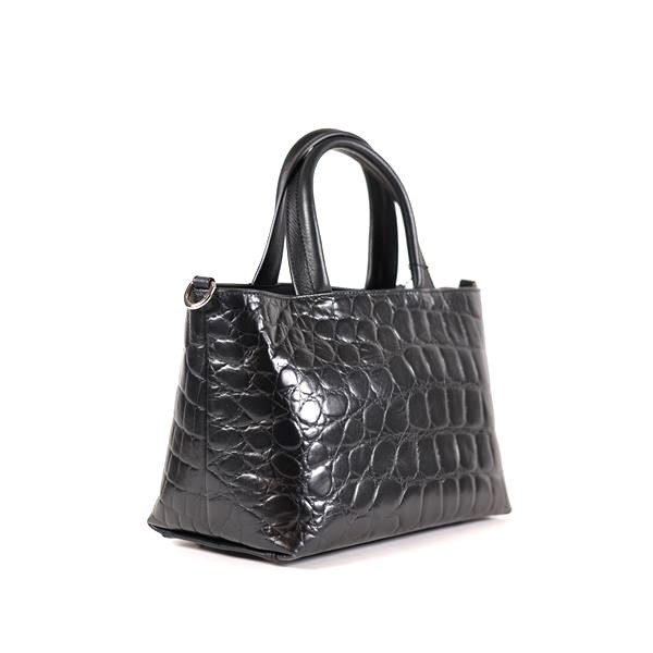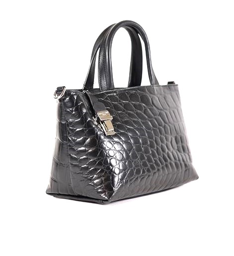 Handtasche schwarz Leder mit Kroko-Prägung von Renato Angi - Made in Italy,