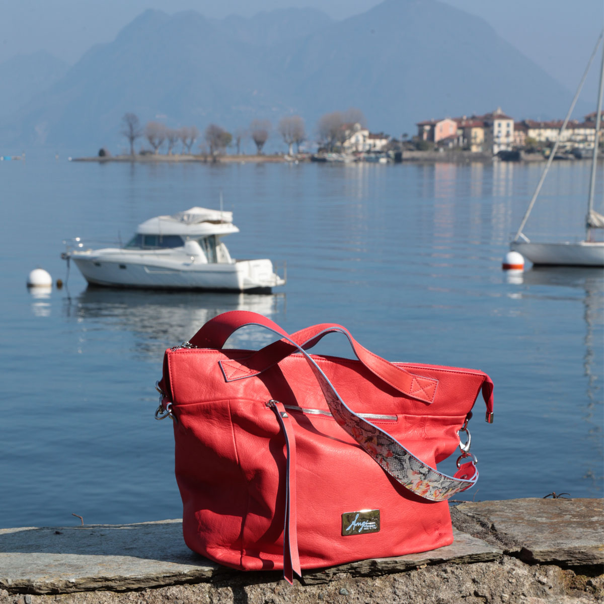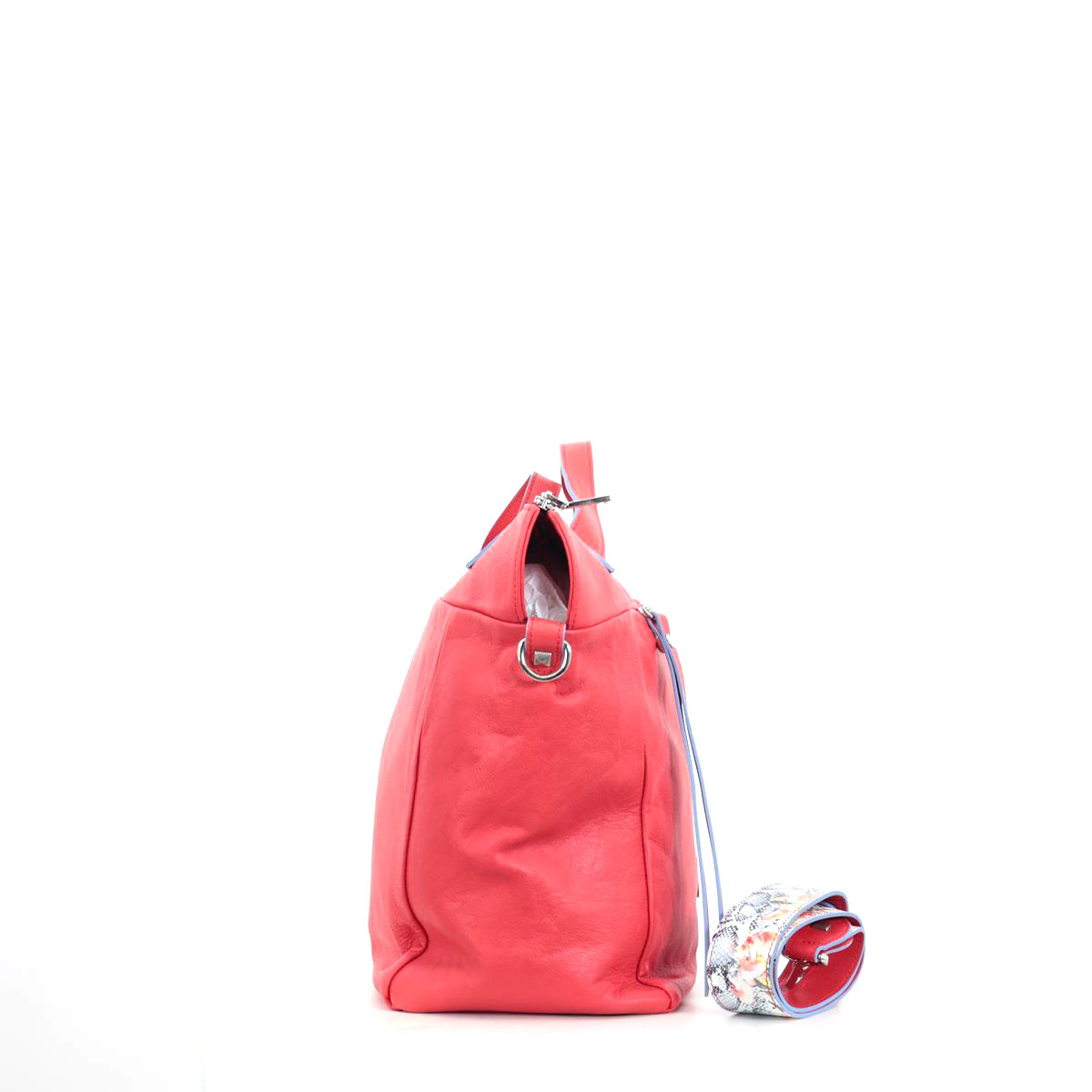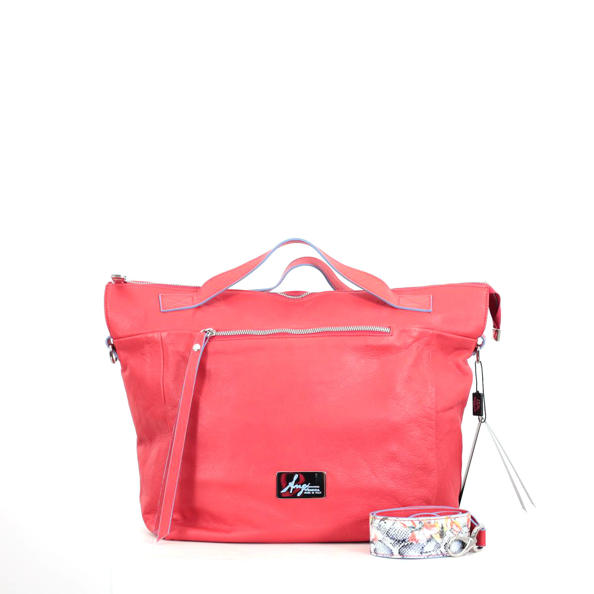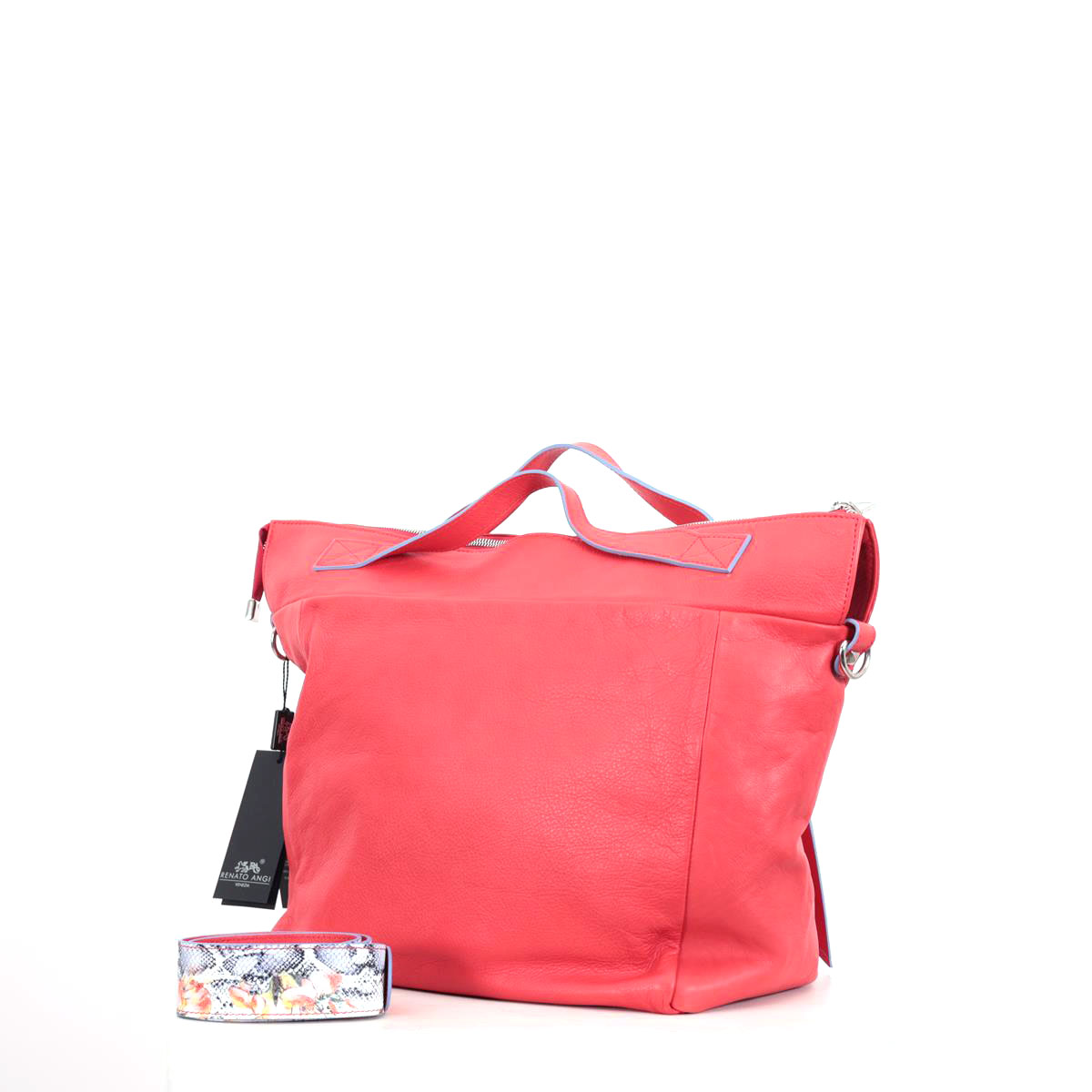 Roter Ledershopper mit Reißverschluss und 2 Tragegriffen aus weichem Kalbsleder von Renato Angi - Made in Italy