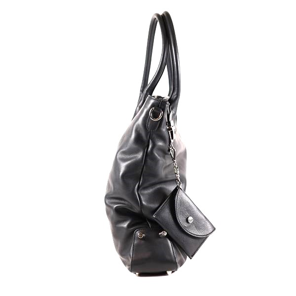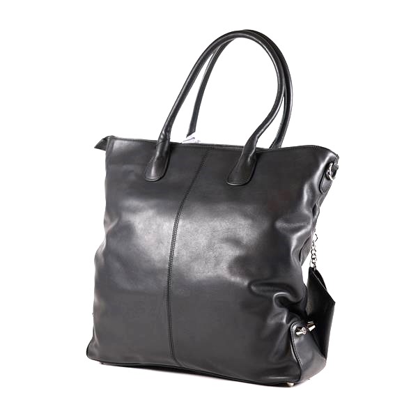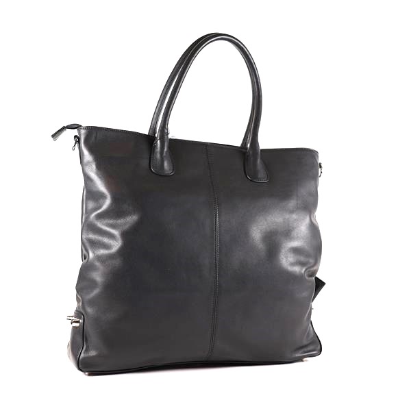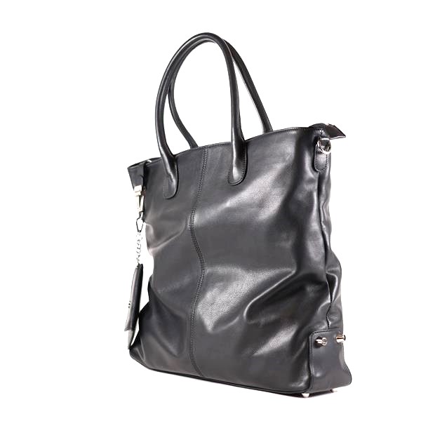 Shopper aus schwarzem Leder, der auch als Umhängetasche getragen werden kann, mit zusätzlichem, abnehmbarem Portemonnaie von Renato Angi - Made in Italy.